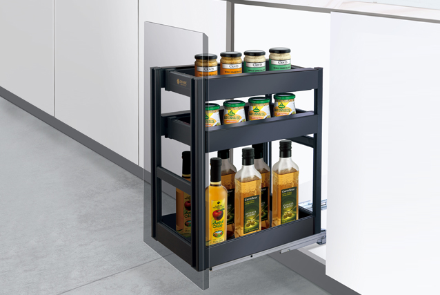 → the first and second layers of small drawers are designed to store condiments, knives and forks and cooking utensils.