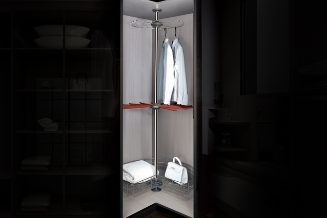 → Three-layer flying saucer design, custom-made for the corner cabinet;